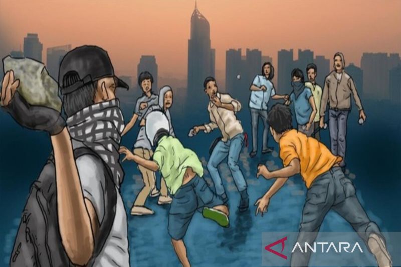 Tawuran antara dua kelompok pemuda terjadi di Jalan Daan Mogot, Kecamatan Kebon Jeruk, Jakarta Barat (Jakbar), saat …